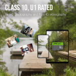 - Class 10 – UHS-I, U1 speed class performance allows for fast and smooth continuous HD shooting and full HD video recording