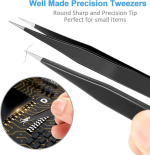 - 【 Precision Electronics ESD Tweezers 】 — These ESD Precise tweezer set is made very well with sharp round pinted tip, sturdy and pricise, you even can use these tweezers to grab the hairs easily. Excellent choice for electronics, jewelry and crafts, medical and laboratory work