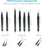 Our tweezers has 7 different tweezes, compared to others, we have additional anti static precision tweezer for backup, which is more convnient !